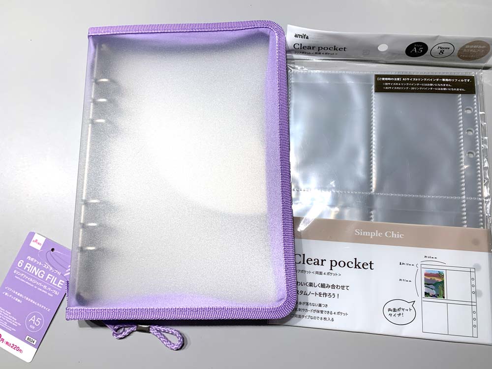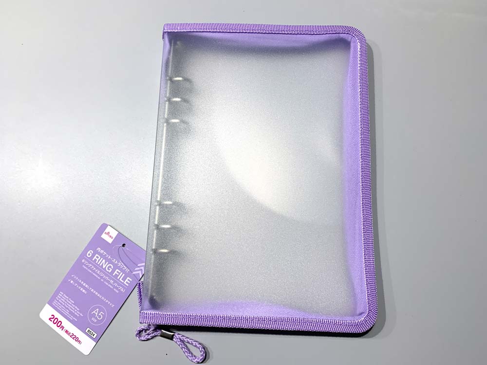 - 【DAISO】6リングファイル(A5、ジッパー付、パープル)