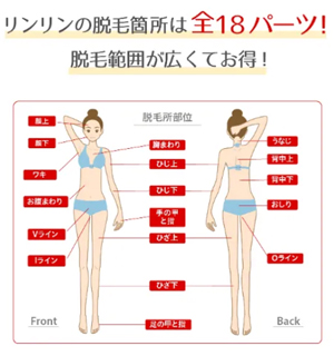 リンリンのおすすめポイントは、「脱毛パーツの設定範囲が広いこと」