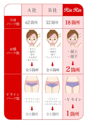 2)RinRin(リンリン):【1パーツの脱毛範囲が広い】費用を抑えたい方向け