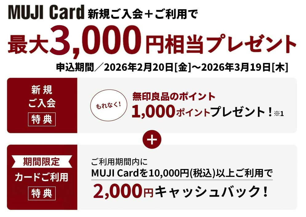 さらに今なら、MUJIカードへの新規入会で、もれなく無印良品で使える1,000ポイントも貰えるので、MUJIカードを作るなら今がチャンス!