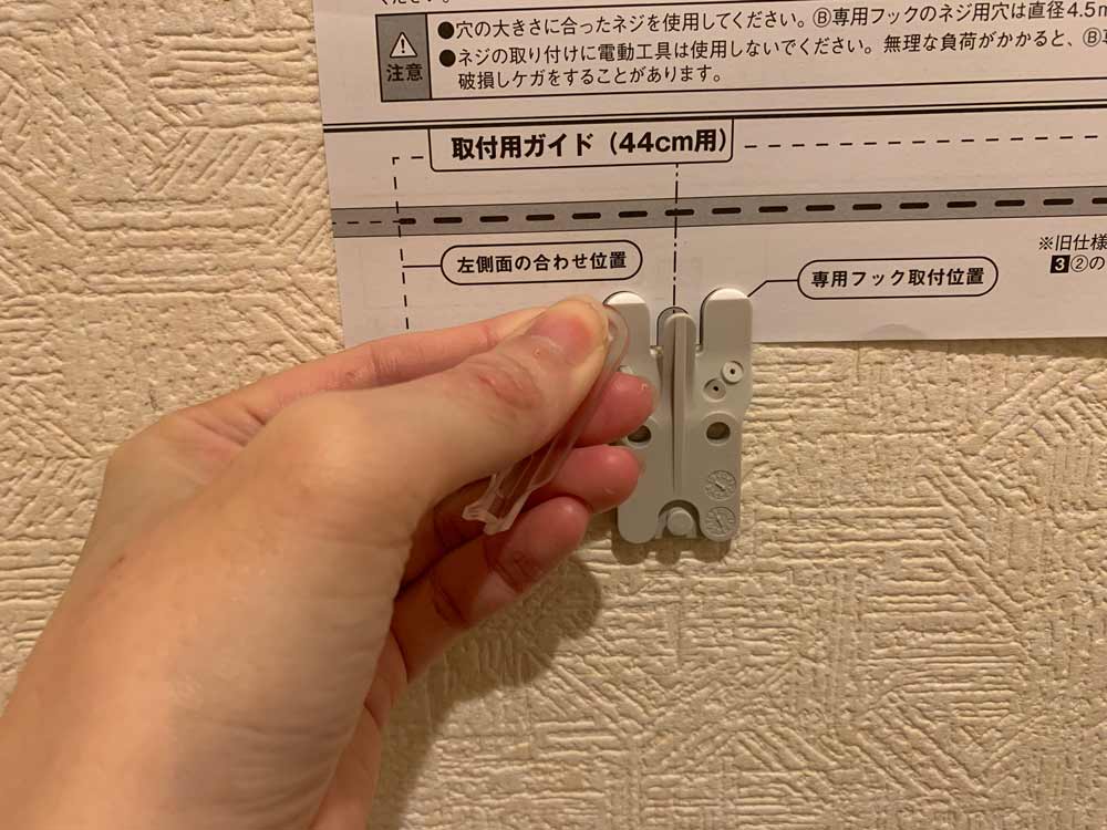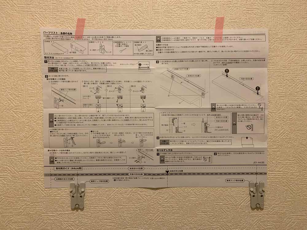 取り付けに必要な専用ピンや道具も付属されているので、ピンを壁に差し込むだけで簡単に設置できました。