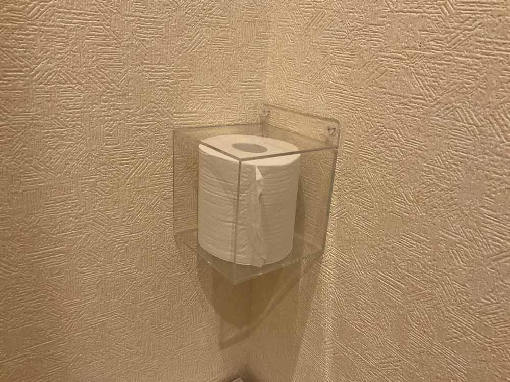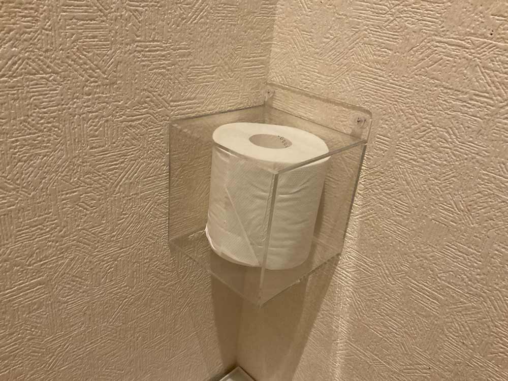 ボックスが透明なので狭いトイレでも圧迫感もないし、石膏ボードの壁の好きな場所に設置できるので、ストックしているトイレットペーパーが取りやすいのも良かったです。